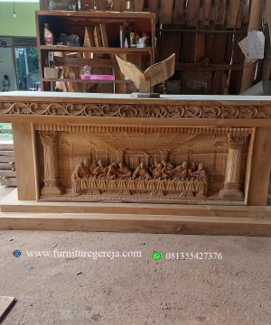 Produk kami  dikerjakan dengan tenaga terampil profesional yang sudah mengisi  aneka interior gereja di Indonesia selama puluhan tahun, dan kami menerima aneka model meja latar gereja minimalis jati  ( custom )   dari  bentuk, model, ukuran  tenaga kerja kami  menggunakan tenaga ahli tempil mulai dari desain, tukang, tenaga amplas, finising  sehingga menghasilkan hasil furniture berkualitas