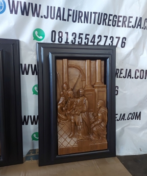 ukiran perjamuan kudus kayu jati,